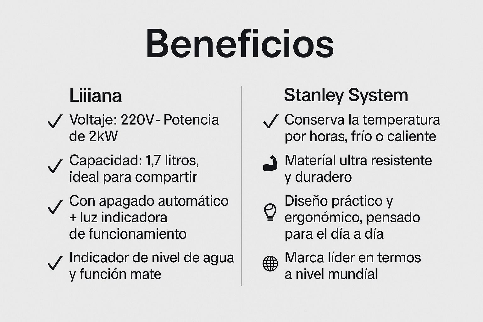 Con la rapidez de la pava eléctrica Liliana y la durabilidad del termo Stanley, nunca más te vas a preocupar por la temperatura del agua.